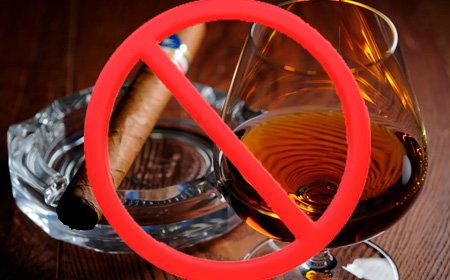 Значок запрета стоит на алкоголе и сигаретах